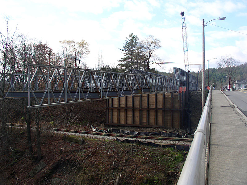 Constructed temporary abutments to install a 200' Maybe Bridge.